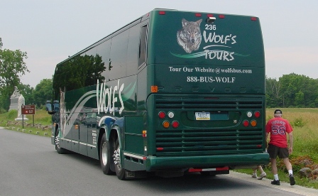 We climbed aboard the bus at 8:45 am on Saturday for a delightful and informative three-hour tour of the Soldiers’ National Cemetery and battlefield. Our tour guide, Ed Guy, handed out a large sheet to everyone entitled HASKELL REUNION—Gettysburg 2011. He had drawn a large map of the battlefield in the center of the sheet and then on each side he had listed all of the Haskells who fought at Gettysburg together with their state regiment and company. You can see a photo of this sheet by clicking here.